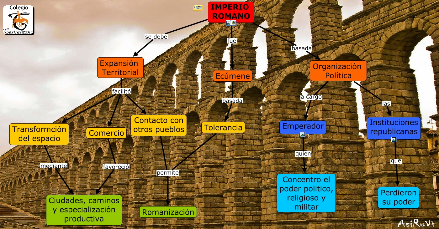 Este Cmap, tiene información relacionada con: Imperio Romano, Organización Política las Instituciones republicanas, Ecúmene basada Tolerancia, Expansión Territorial facilitó Contacto con otros pueblos, Expansión Territorial facilitó Transformción del espacio, Organización Política a cargo Emperador, Transformción del espacio mediante Ciudades, caminos y especialización productiva, Emperador quien Concentro el poder politico, religioso y militar, Expansión Territorial facilitó Comercio, IMPERIO ROMANO fue Ecúmene, IMPERIO ROMANO se debe Expansión Territorial, Contacto con otros pueblos permite Romanización, Instituciones republicanas que Perdieron su poder, IMPERIO ROMANO basada Organización Política, Comercio favoreció Ciudades, caminos y especialización productiva, Tolerancia permite Romanización
