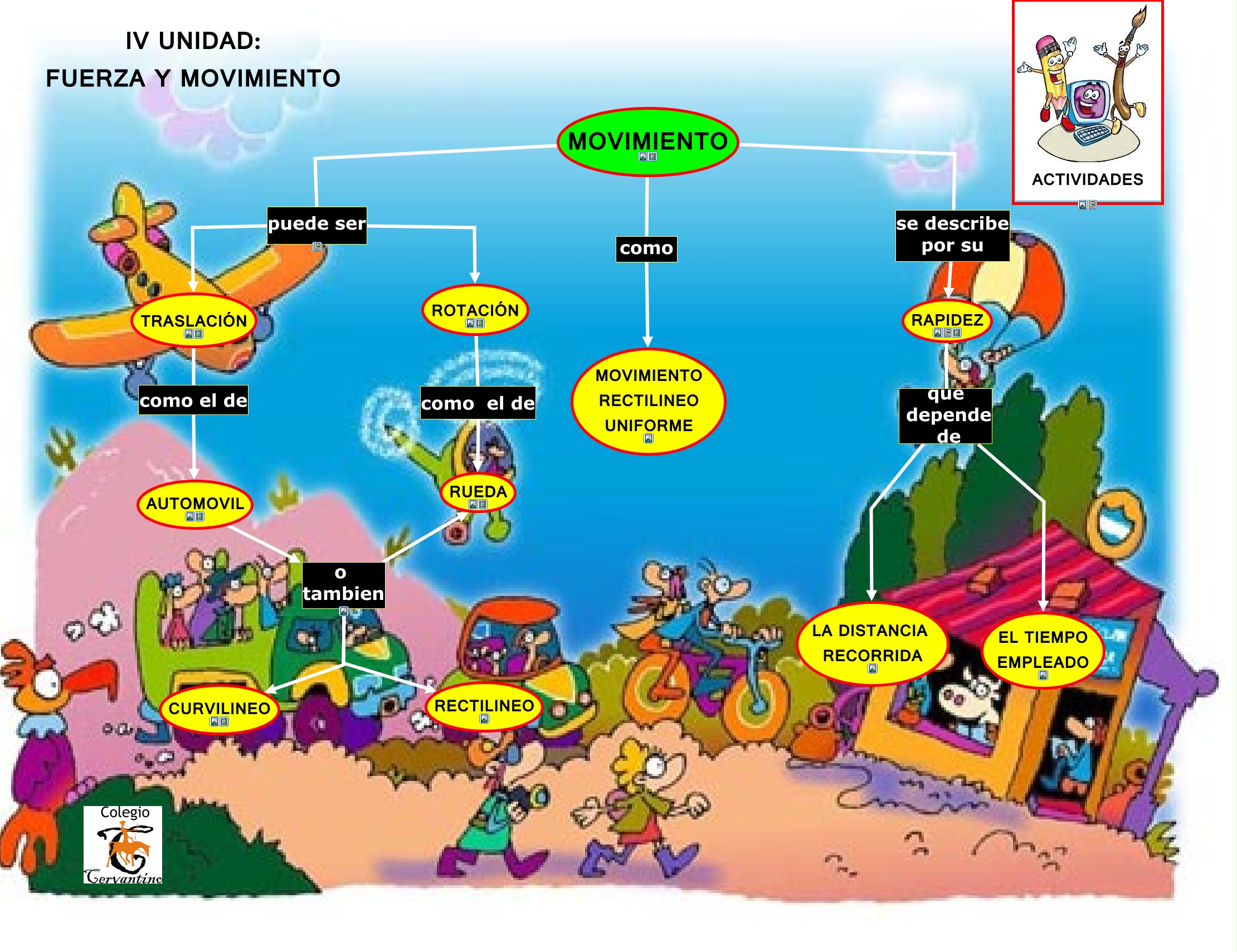 Este Cmap, tiene información relacionada con: fuerza y movimiento, AUTOMOVIL o tambien RECTILINEO, AUTOMOVIL o tambien RUEDA, RAPIDEZ que depende de EL TIEMPO EMPLEADO, ROTACIÓN como el de RUEDA, AUTOMOVIL o tambien CURVILINEO, MOVIMIENTO se describe por su RAPIDEZ, MOVIMIENTO puede ser ROTACIÓN, TRASLACIÓN como el de AUTOMOVIL, RAPIDEZ que depende de LA DISTANCIA RECORRIDA, MOVIMIENTO como MOVIMIENTO RECTILINEO UNIFORME, MOVIMIENTO puede ser TRASLACIÓN