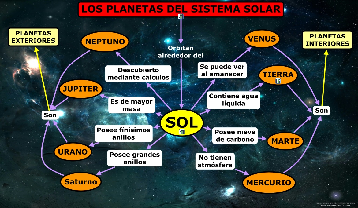 Este Cmap, tiene información relacionada con: Los planetas del sistema solar, SOL Es de mayor masa JUPITER, SOL Descubierto mediante cálculos NEPTUNO, VENUS Son PLANETAS INTERIORES, NEPTUNO Son PLANETAS EXTERIORES, JUPITER Son PLANETAS EXTERIORES, MARTE Son PLANETAS INTERIORES, URANO Son PLANETAS EXTERIORES, SOL Posee fínisimos anillos URANO, SOL Posee nieve de carbono MARTE, LOS PLANETAS DEL SISTEMA SOLAR Orbitan alrededor del SOL, Saturno Son PLANETAS EXTERIORES, SOL Se puede ver al amanecer VENUS, MERCURIO Son PLANETAS INTERIORES, TIERRA Son PLANETAS INTERIORES, SOL No tienen atmósfera MERCURIO, SOL Contiene agua líquida TIERRA, SOL Posee grandes anillos Saturno