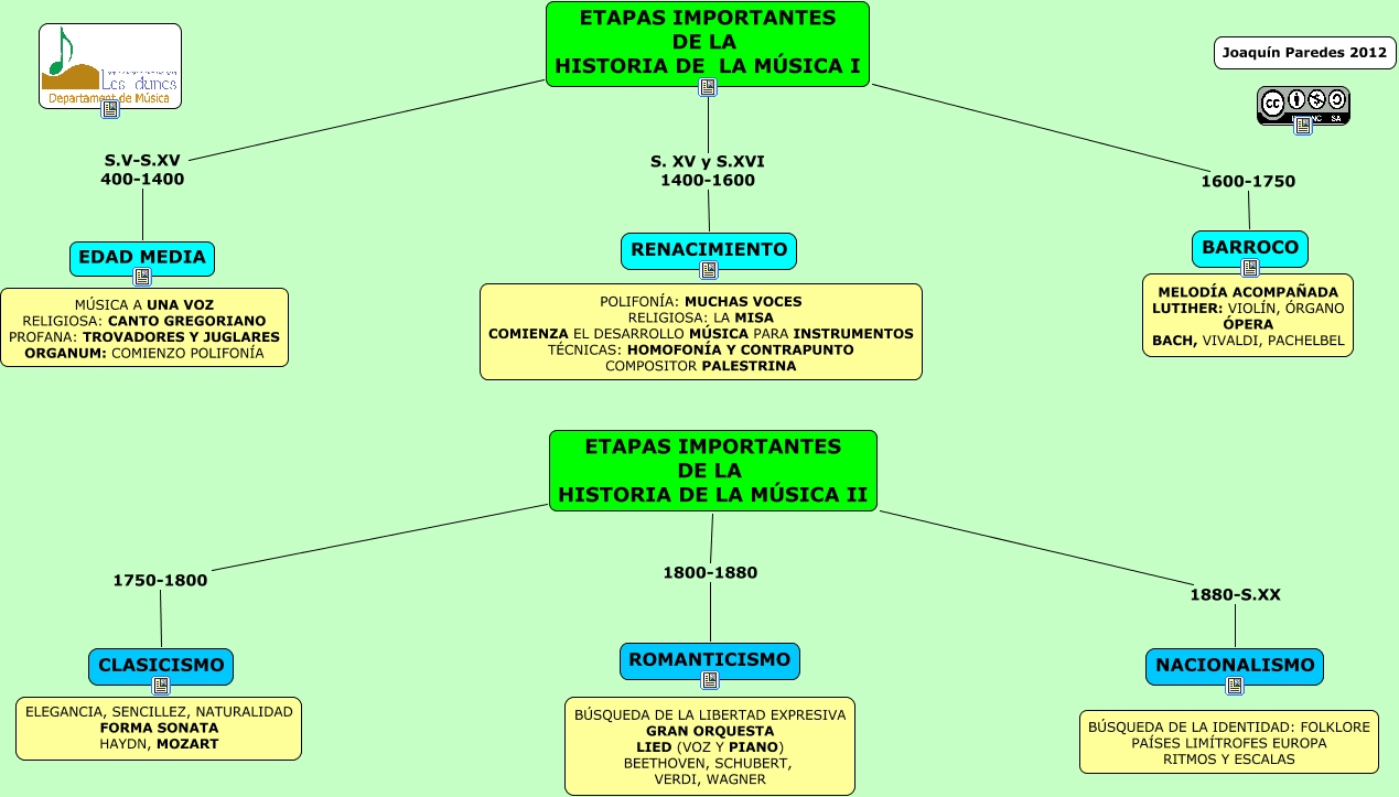 Este Cmap, tiene información relacionada con: Epocas música, ETAPAS IMPORTANTES DE LA HISTORIA DE LA MÚSICA II 1750-1800 CLASICISMO, ETAPAS IMPORTANTES DE LA HISTORIA DE LA MÚSICA I S.V-S.XV 400-1400 EDAD MEDIA, ETAPAS IMPORTANTES DE LA HISTORIA DE LA MÚSICA II 1800-1880 ROMANTICISMO, ETAPAS IMPORTANTES DE LA HISTORIA DE LA MÚSICA II 1880-S.XX NACIONALISMO, ETAPAS IMPORTANTES DE LA HISTORIA DE LA MÚSICA I S. XV y S.XVI 1400-1600 RENACIMIENTO, ETAPAS IMPORTANTES DE LA HISTORIA DE LA MÚSICA I 1600-1750 BARROCO