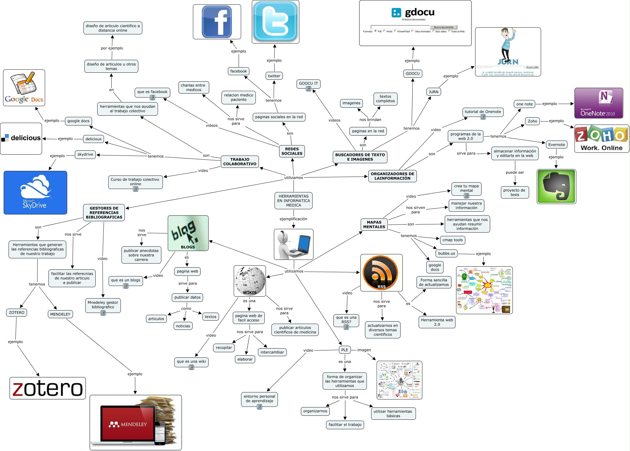 Este Cmap, tiene información relacionada con: MAPA CONCEPTUAL PARA INFORMATICA, HERRAMIENTAS EN INFORMATICA MEDICA utilizamos REDES SOCIALES, facebook ejemplo, google docs ejemplo, BLOGS nos sirve publicar anecdotas sobre nuestra carrera, Zoho ejemplo, diseño de articulos u otros temas por ejemplo diseño de articulo cientifico a distancia online, Herramientas que generan las referencias bibliograficas de nuestro trabajo tenemos ZOTERO, TRABAJO COLABORATIVO video Curso de trabajo colectivo online, TRABAJO COLABORATIVO son herramientas que nos ayudan al trabajo colectivo, REDES SOCIALES videos que es facebook, programas de la web 2.0 sirve para almacenar información y editarla en la web, one note ejemplo, BUSCADORES DE TEXTO E IMAGENES tenemos JURN, utilizamos MAPAS MENTALES, WIKIS video que es una wiki, pagina web de facil acceso nos sirve para elaborar, MAPAS MENTALES nos sirven para manejar nuestra información, GESTORES DE REFERENCIAS BIBLIOGRAFICAS video Mnedeley gestor bibliografico, almacenar información y editarla en la web puede ser proyecto de tesis, forma de organizar las herramientas que utilizamos nos sirve para organizarnos