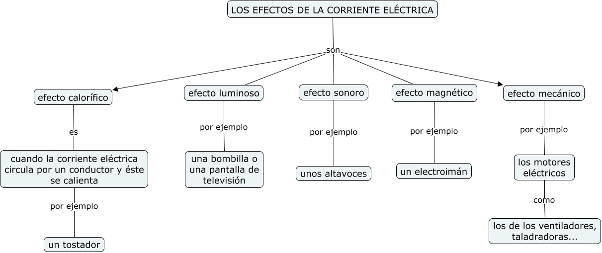 Este Cmap, tiene información relacionada con: Los efectos de la corriente eléctrica, los motores eléctricos como los de los ventiladores, taladradoras..., efecto magnético por ejemplo un electroimán, LOS EFECTOS DE LA CORRIENTE ELÉCTRICA son efecto mecánico, efecto calorífico es cuando la corriente eléctrica circula por un conductor y éste se calienta, LOS EFECTOS DE LA CORRIENTE ELÉCTRICA son efecto luminoso, LOS EFECTOS DE LA CORRIENTE ELÉCTRICA son efecto calorífico, LOS EFECTOS DE LA CORRIENTE ELÉCTRICA son efecto sonoro, efecto luminoso por ejemplo una bombilla o una pantalla de televisión, efecto sonoro por ejemplo unos altavoces, efecto mecánico por ejemplo los motores eléctricos, cuando la corriente eléctrica circula por un conductor y éste se calienta por ejemplo un tostador, LOS EFECTOS DE LA CORRIENTE ELÉCTRICA son efecto magnético