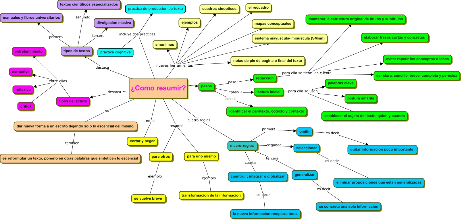 Este Cmap, tiene información relacionada con: mapa conceptual como resumir 2, ¿Como resumir? nuevas herramientas el recuadro, dar nueva forma a un escrito dejando solo lo escencial del mismo. tambien es reformular un texto, ponerlo en otras palabras que sinteticen lo escencial, ¿Como resumir? es dar nueva forma a un escrito dejando solo lo escencial del mismo., macrorreglas tercera generalizar, tipos de lectura entre ellas critica, tipos de textos segundo textos cientificos especializados, pasos paso3 redaccion, ¿Como resumir? incluye dos practicas practica de produccion de texto, tipos de textos primero manuales y libros universitarios, redaccion para ella se tiene en cuenta mantener la estructura original de titulos y subtitulos, macrorreglas cuarta cosntruir, integrar o globalizar, ¿Como resumir? nuevas herramientas cuadros sinopticos, seleccionar es decir eliminar proposiciones que estan generalizadas, ¿Como resumir? ???? pasos, ¿Como resumir? incluye dos practicas practica cognitiva, ¿Como resumir? destaca tipos de textos, ¿Como resumir? resumir para otros, ¿Como resumir? nuevas herramientas sistema mayuscula- minuscula (SMmn), pasos paso 1 identificar el paratexto, cotexto y contexto, pasos paso 2 lectura inicial